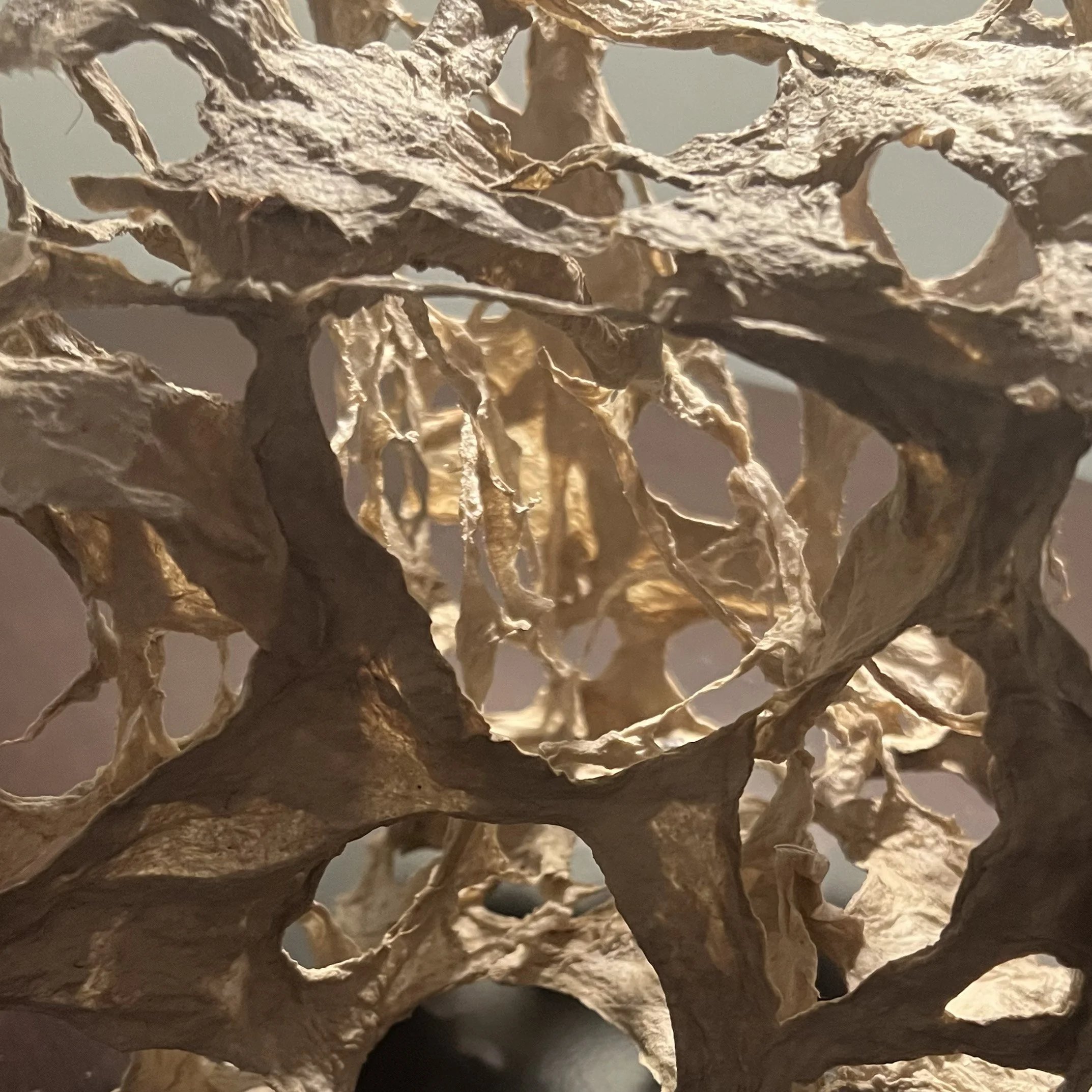 My work embodies the transformative nature of paper, where strength and fragility intertwine, and resilience emerges. Inspired by the life-giving rhythm of water, it captures memory and movement, flowing across landscapes to sustain life in the most delicate and barren spaces. Water and fibers merge in a dance of contrast and harmony, echoing cycles of transformation, endurance, and renewal, where creation and survival converge. Through dynamic, layered forms, my work explores perspective and possibility, inviting reflection on distance, space, and memory. It captures the essence of observation, outward, toward shaping horizons, and inward, toward thought and emotion, bridging the tangible and intangible in a unified vision.
